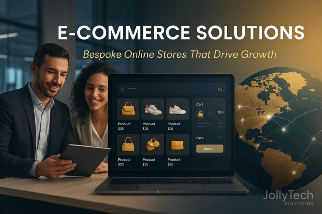 In today’s connected world, your online store is your global flagship. It needs to be engaging, efficient, and powerful. At JollyTech Solutions, we specialise in building bespoke e-commerce platforms that drive growth. We transform your digital presence into a seamless shopping experience that captivates customers and boosts your sales.